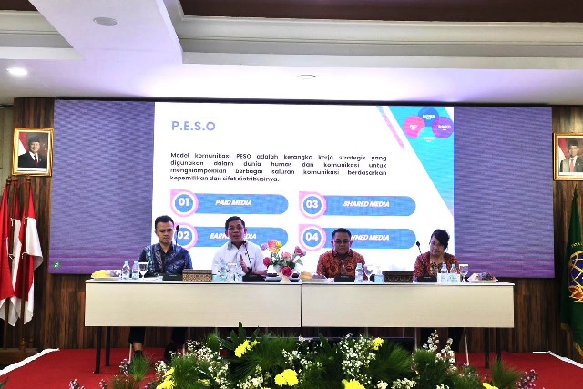 Dalam paparannya, Kepala Biro Humas dan Protokol juga memperkenalkan kerangka kerja dan 4 model strategi komunikasi P.E.S.O (Paid, Earned, Shared, dan Owned Media) sebagai pendekatan komunikasi yang komprehensif.