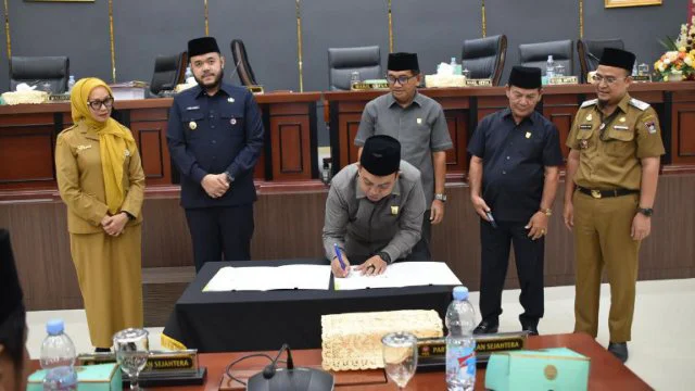 Pada rapat paripurna itu juga dilakukan penyerahan dan penandatanganan dokumen yang disampaikan oleh Ketua DPRD Kota Padang Muharlion dan Walikota Padang. (adv)