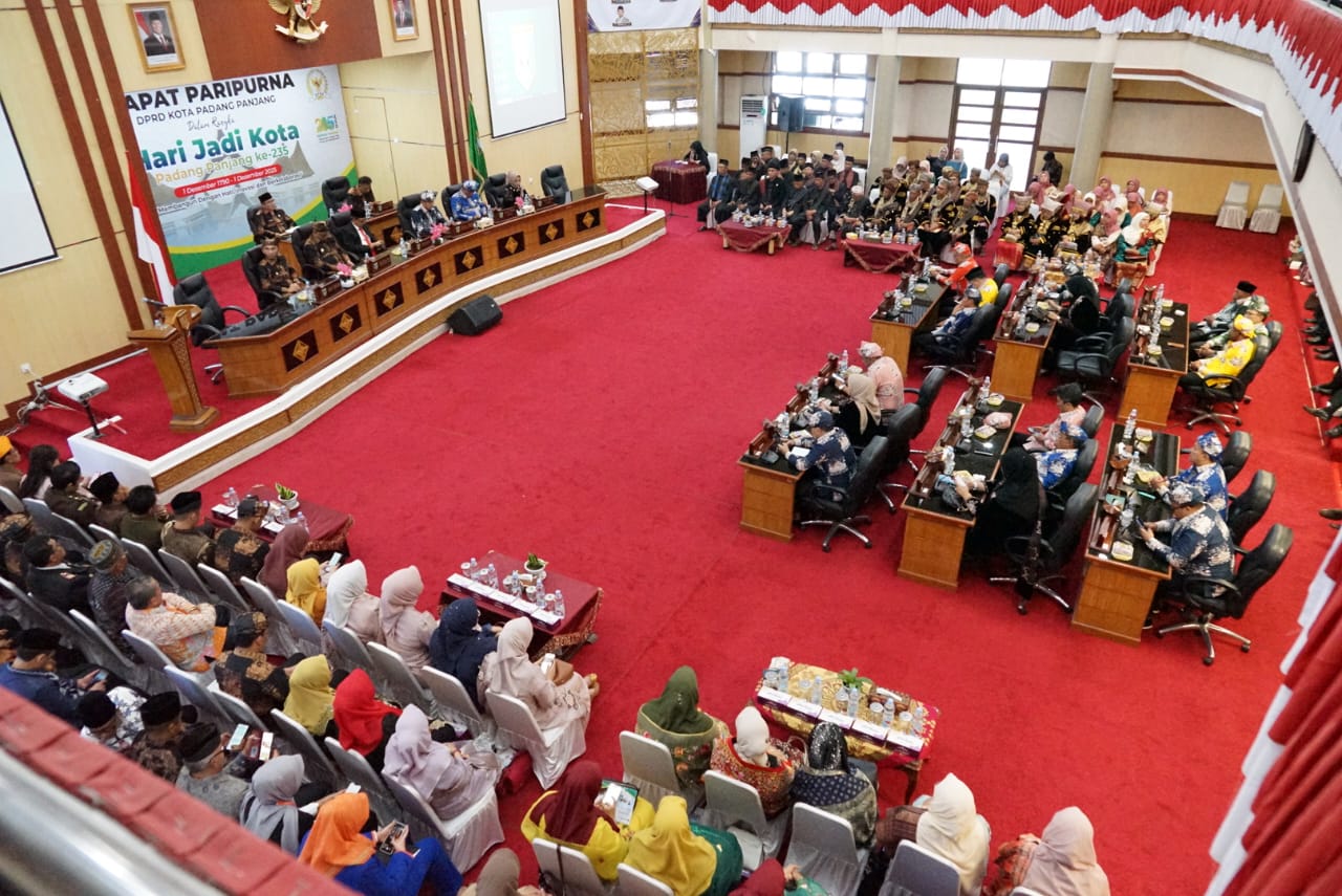 Rapat Paripurna DPRD yang digelar Senin (1/12) berlangsung sederhana namun penuh makna. Ketua DPRD Kota Padang Panjang, Imbral, memimpin langsung jalannya sidang yang diawali dengan pembacaan doa dan Surah Al-Fatihah sebagai bentuk penghormatan bagi para korban bencana yang terjadi beberapa hari sebelumnya.