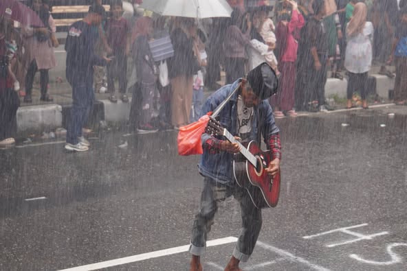 Tawa riang dan teriakan penuh antusias terdengar ketika air menyembur ke udara. Sebagian warga berlarian menghindar, namun tidak sedikit pula yang sengaja bertahan demi merasakan keseruan guyuran tersebut.