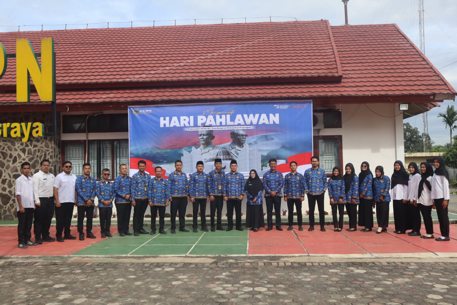 Bertindak sebagai inspektur upacara, Bapak Muhammad Zaenas Surur, S.Tr., yang dalam amanatnya mengajak seluruh peserta untuk meneladani semangat juang para pahlawan serta menjadikan momentum Hari Pahlawan sebagai pengingat untuk terus berkontribusi dalam membangun bangsa, khususnya melalui pelayanan pertanahan yang profesional dan berintegritas.
