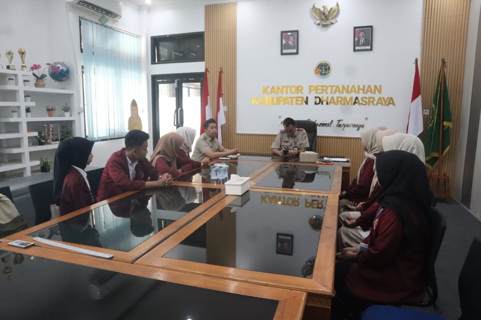 Kepala Kantor Pertanahan Kabupaten Dharmasraya didampingi oleh Analis Sumber Daya Manusia Aparatur mengatakan siap untuk menghadirkan suasana belajar yang terbaik bagi mahasiswa yang melaksanakan magang karena Pertanahan Kabupaten Dharmasraya adalah sebagai salah satu kantor yang menjalankan tugas-tugas pelayanan publik.