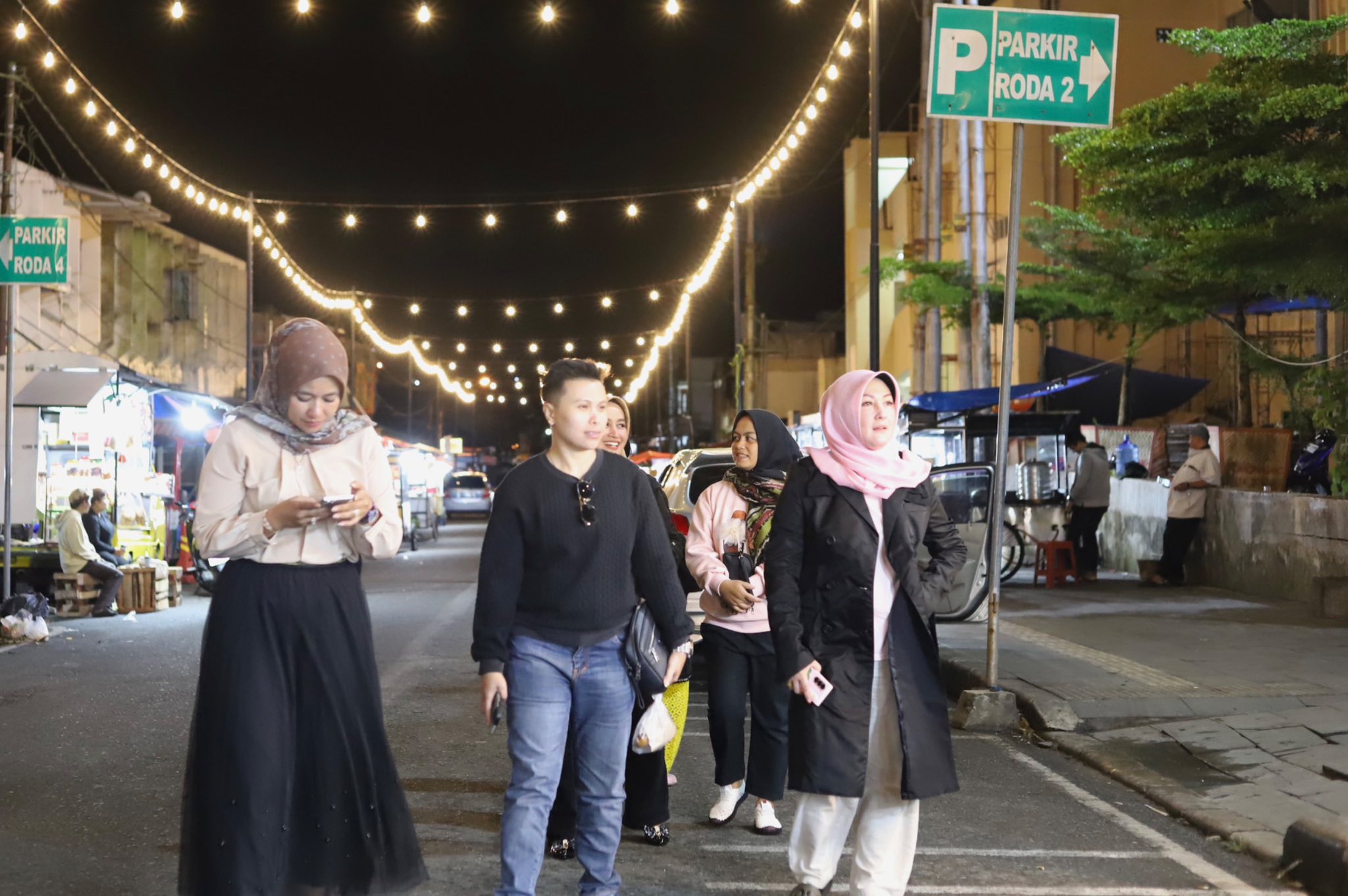 Ketua TP-PKK Kota, Ny. Maria Feronika Hendri, Ahad (11/5/2025) malam, juga menikmati suasana malam liburan di Pasar Pusat sambil berburu jajanan dan keliling melihat kondisi pasar.