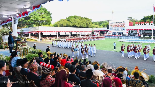 Upacara berlangsung khidmat dengan rangkaian prosesi pengibaran bendera Merah Putih, pembacaan teks Proklamasi, hingga penampilan atraksi seni dan budaya dari berbagai daerah di Indonesia. Dalam kesempatan ini, Menteri Nusron tampil dengan baju adat Melayu dan Wamen Ossy dengan balutan baju adat Betawi.