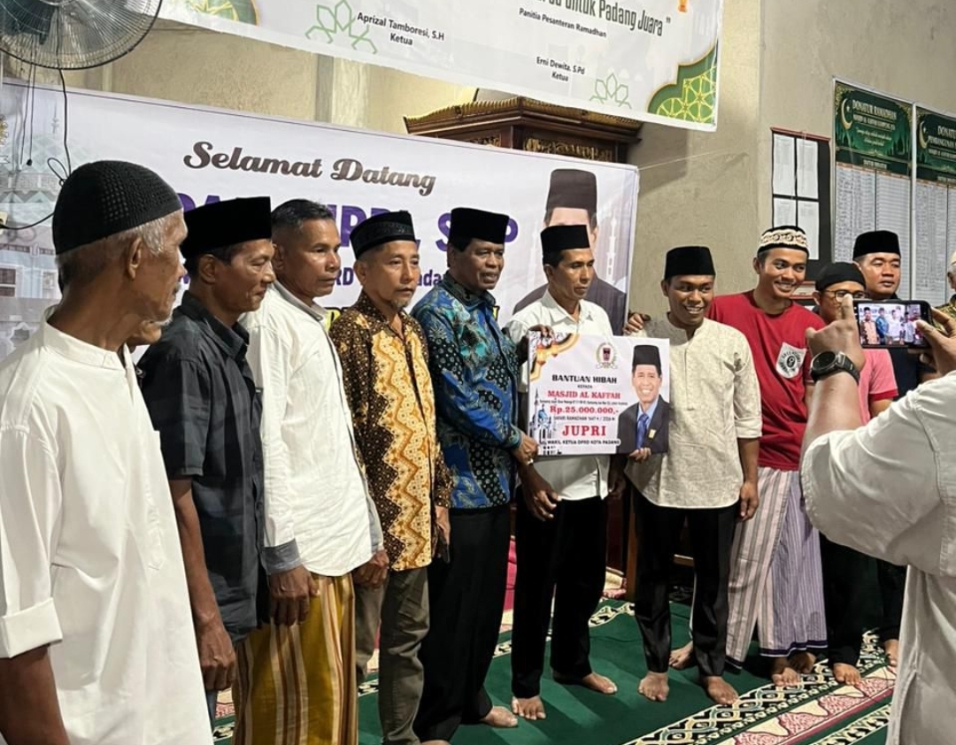Dalam kesempatan tersebut, Jupri juga menyerahkan bantuan hibah sebesar Rp25 juta secara simbolis kepada pengurus Masjid Al Kaffah. Bantuan ini merupakan bagian dari program Safari Ramadhan DPRD Kota Padang untuk mendukung kegiatan keagamaan dan operasional masjid.