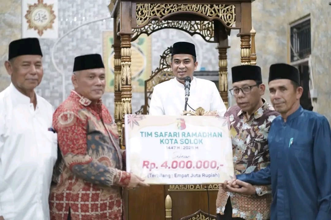 EKSPRESNEWS – Wali Kota Solok, Dr. H. Ramadhani Kirana Putra, SE, MM memimpin langsung Tim I Safari Ramadhan Pemerintah Daerah Kota Solok yang terdiri dari unsur DPRD, kepala OPD, pimpinan instansi vertikal, pimpinan perbankan, BUMD, kementerian agama, serta insan pers mengunjungi Masjid Al Aqsa Gawan, Sabtu (21/02/2026). Kunjungan tersebut menjadi ajang silaturahmi sekaligus penyampaian berbagai program pembangunan kepada masyarakat.